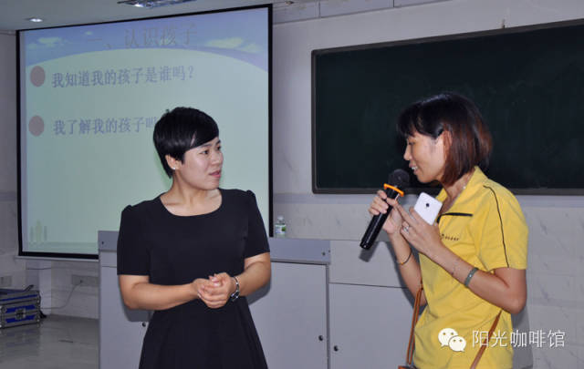 杨光老师的课程以“与孩子一起成长”为主题,从深圳某小学六年级学生跳楼事件为切入点,告诉家长们亲子教育的重要性。随后,杨光老师分别从“认识孩子、认识自己、如何成为合格的家长”三个方面,用生动的案例和家长们分享了富有实效的家庭教育方法。